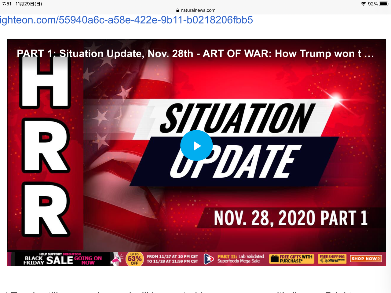 (ナチュラル・ニュース)本日、2020年11月29日のシチュエーション・アップデートを投稿しました。これは、ディープステートのアメリカとの戦争における最新の動向と戦略をカバーしています。