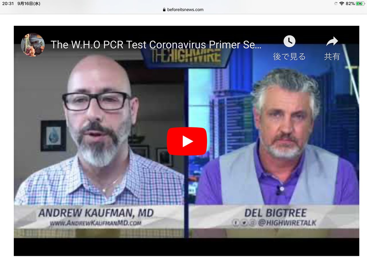 Del BigtreeのThe Highwire(Them Tubeがチャンネルを削除する前)とYumNaturals Emporiumからのオリジナルビデオ:https ://youtu.be/5y1KzCKrZ3A記事:BOMBSHELL:WHOコロナウイルスPCRテストプライマーシーケンスはすべての人間のDNAで見つかりましたhttps:// pieceofmindful.com/2020/04/06…PCRテストに関するKary Mullisの引用:http : //www.virusmyth.org/aids/hiv/jlp…(アーカイブリンク:https : //archive.is/onUc7)