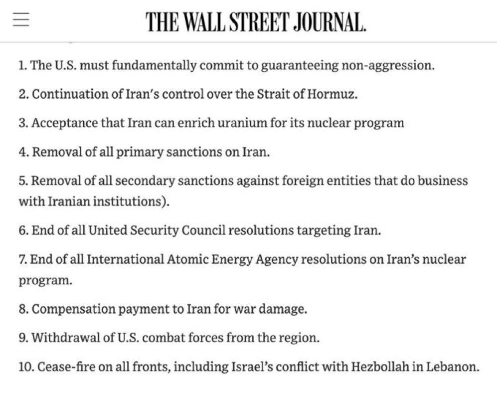 イラン側はトランプ氏が「交渉のための実行可能な根拠」と呼んだ10項目の停戦計画(左)を提示した