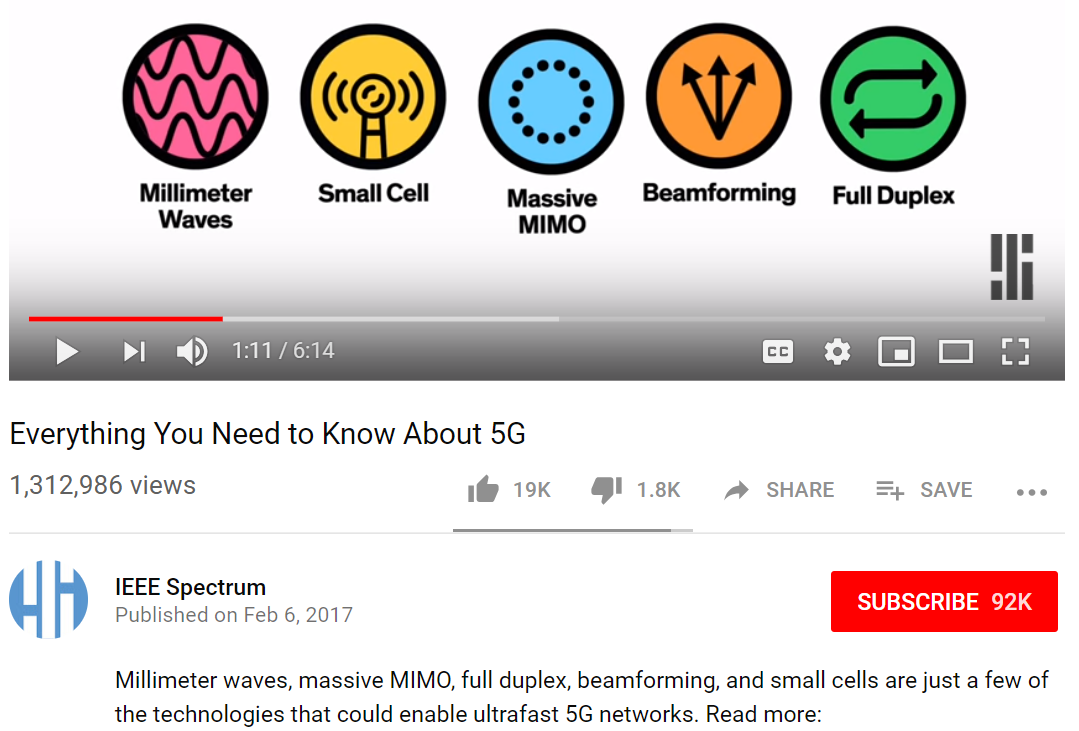 IEEEは、5Gを説明するビデオで、「ビームフォーミング」は確かに5Gの側面であり、指向性のあるミリ波放射を携帯電話などのターゲットに直接送信する手段であると説明しています。