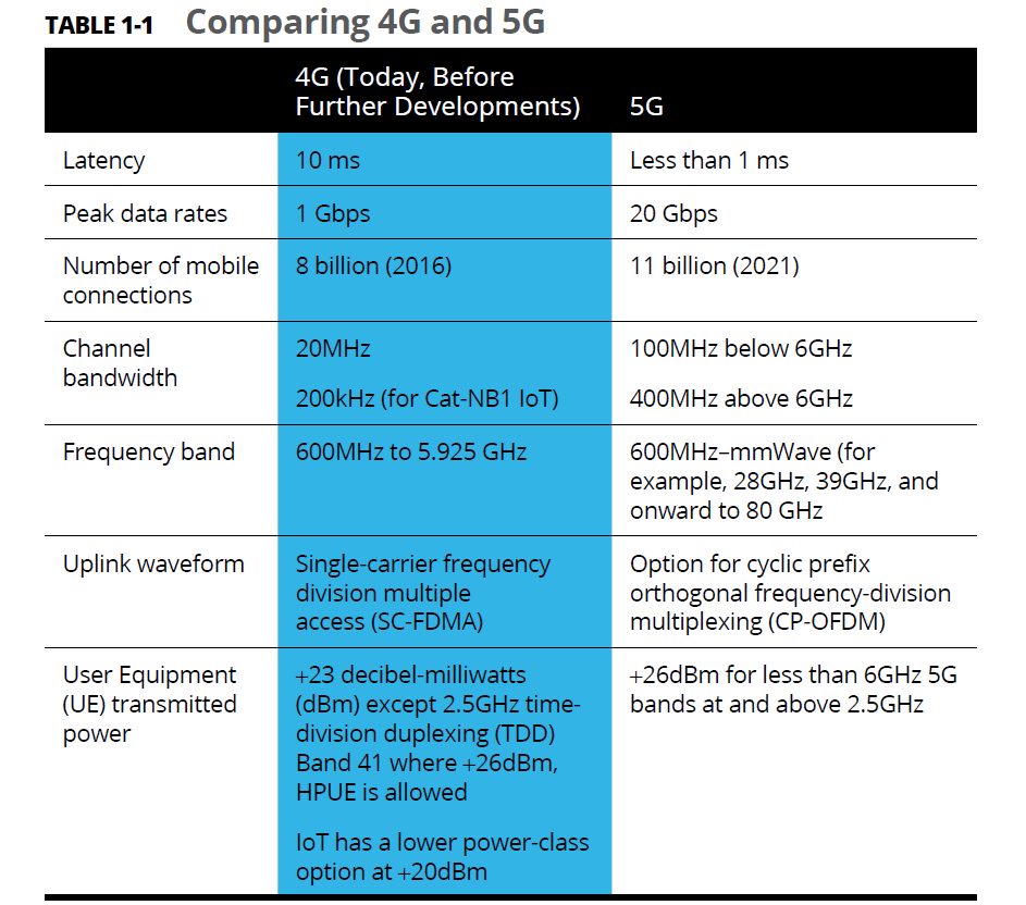 Image: Table 1:1, Pg 7, 5g RF for Dummies/Qorvo.com