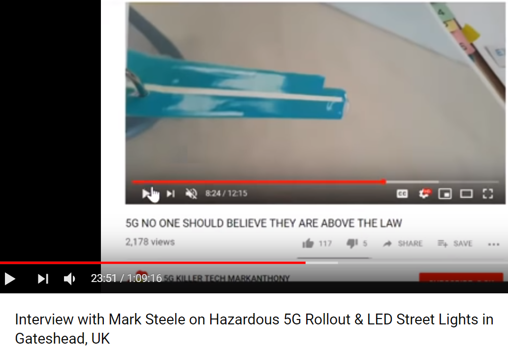 「5Gは武器システムであり、それ以上でもそれ以下でもない」:技術兵器の専門家マーク・スチールが、ゲーツヘッドでの5G LED街路灯運用開始に関する英国のすべての居住者へのモーニングコールを発行している。
