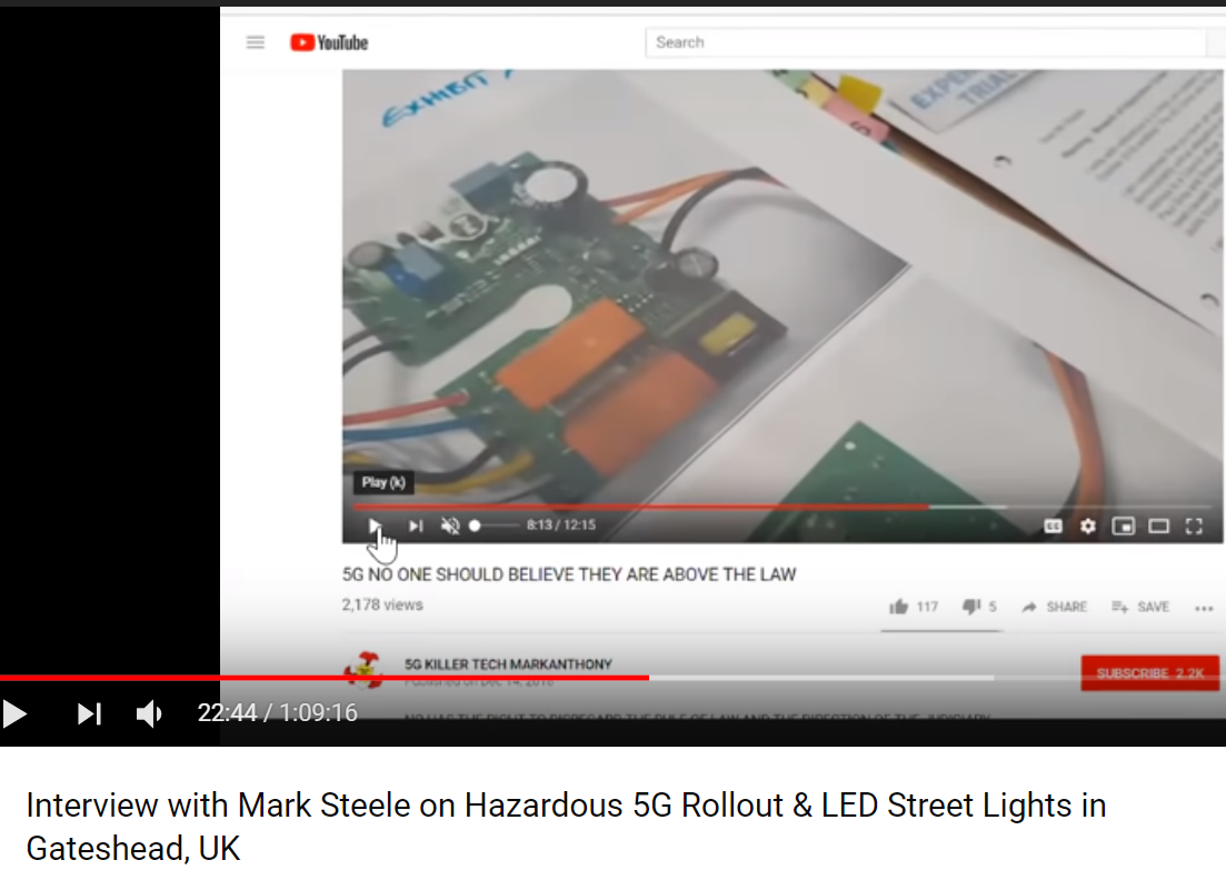 2019年1月22日にRamola D Reportsで放送された強力で技術的に洞察力に富んだ会話で、マーク・スチールは技術兵器の専門家、パテントライター、発明者、核研究技術責任者は、5Gの危険性とイギリス、5G運用開始の一部であるゲイツヘッドでの最近のLED街灯の展開について力強く語りました 。